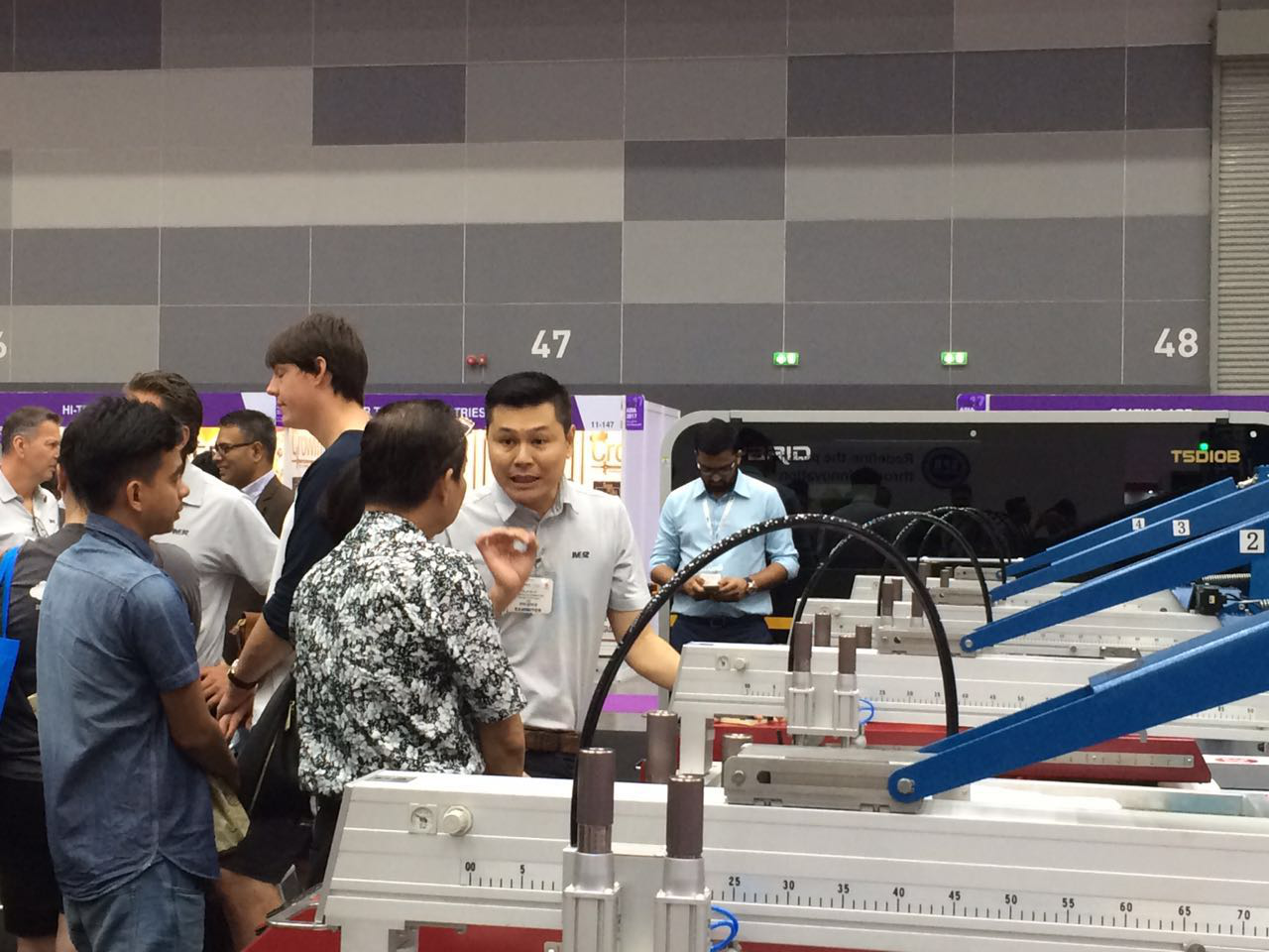 对于VictoryOne®来说,今天最“长脸”的应该还是得到展会现场的各位客户的认可,“诚拓出品,必属精品”,来参观VictoryOne®的其中一位可是重量级嘉宾了。他是泰国内阁成员之一,泰国商业部副部长颂提叻(Sontirat Sontijirawong),当天早上,他在其他泰国高级官员陪同下来到了VictoryOne®展台,亲切的慰问了展台的工作人员,并饶有兴致参观VictoryOne®,仔细了解VictoryOne®的产品性能以及产能等各方面的信息,对诚拓数码的制造工艺与科研实力机遇了很高的好评。