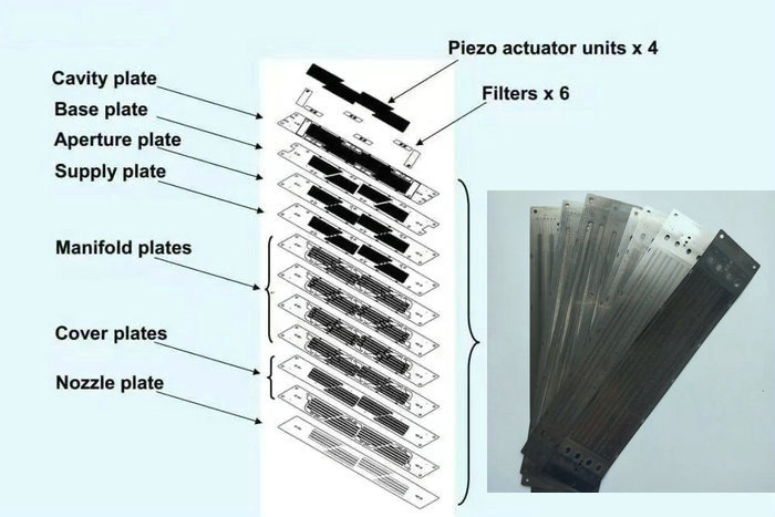 再次,京瓷喷头采用不锈钢喷嘴面板与金属外壳,在严苛的工业使用环境中具备高可靠性。11层喷嘴片的精密结构,保证了打印精度和质量。能把结构做到这么精密而且打印速度、精度在市场上也有相对优势,这也是京瓷UV打印机喷头的科技硬实力。
