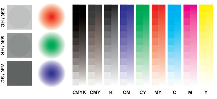 众多的UV打印机厂家也在如何进一步提升喷墨打印精细度方向进行着孜孜不倦的研究。UV喷墨打印是以青色 (C) 洋红色(M) 黄色 (Y) 三原色减色法呈现颜色。CMY这三种油墨能混合出最多的颜色,而且色域最宽。而三原色并不能混合出真正的黑色,需要有专门的黑色(K),所以UV打印机常说的四色也就是CMYK。