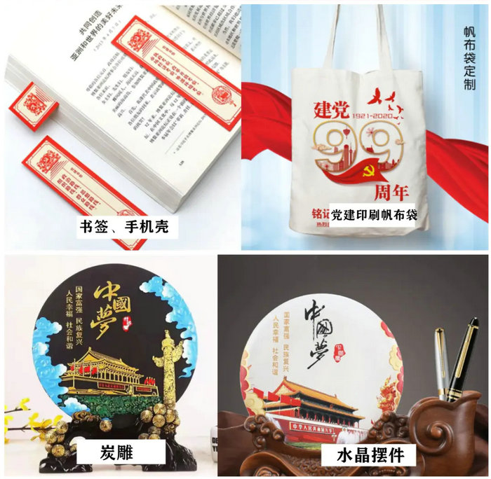 除了传统的宣传媒介,各种印有党庆主题图案的纪念品,也存在很大的需求。这对工艺品、精品、礼品的生产厂商来说,也是一个难得的业务的增长点。工业UV打印机在这块自然也成为制作这些产品的利器。