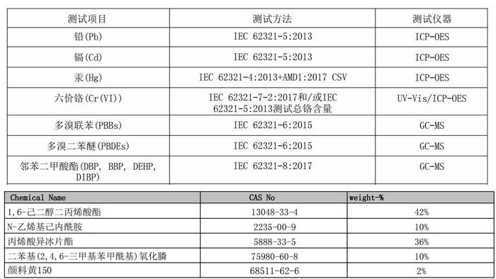 那是否就说明UV喷印这样的方式并不环保安全呢?其实不然。我们知道,量变导致质变,脱离了量去谈论某种化学产品是否环保无毒都是不科学的,对于UV打印机的油墨来说也是一样。从多数UV油墨的MSDS(化学品安全说明书)中可以看到,苯类、丙烯酸酯类物质是主要的检测对象,也是UV油墨性表征的主要物质。在MSDS中都会对这些含量进行标定,含量在安全值以下的都可以认为是安全的。