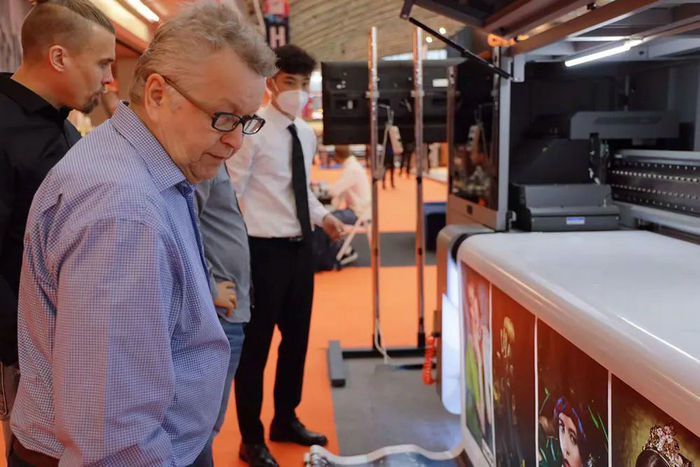 汉拓数码除了带来高自动化的HT2500ROBO高速工业UV打印机,还有142㎡/h高速喷印、全新外观设计的宽幅卷板两用机型HT3200E以及采用高精直线电机方案、实现101㎡/h平板高速输出的HT2512FK10。