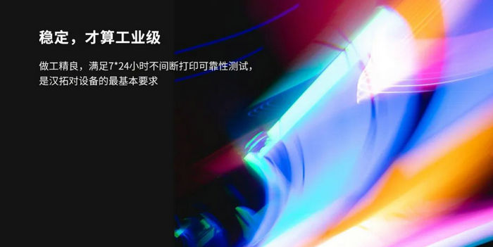 其次,对于软膜打印,产能是一个首要关注的问题。汉拓UV打印机配置的京瓷喷头及喷头排列组合方案,让大幅面软膜喷印更稳定,实现高速生产。7*24小时不间断打印可靠性是汉拓对设备的最基本要求。